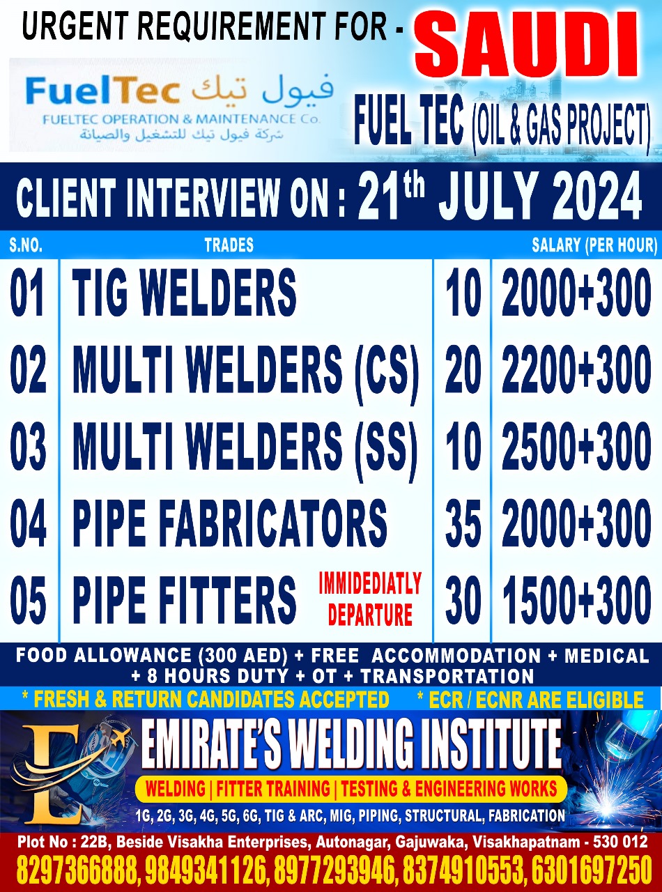 Emirates Welding & fitter Training Institute and Testing Centre is established in the year 2019, Pipe Welding Course To provide training to an individual to achieve an acceptable standard of welding in pipe butt welding. The delegate will preferably This Training and Test Centre is well equipped with good infrastructure, latest machinery for testing and Training. Our aim is to provide best technical education to benefit all the section of the society.